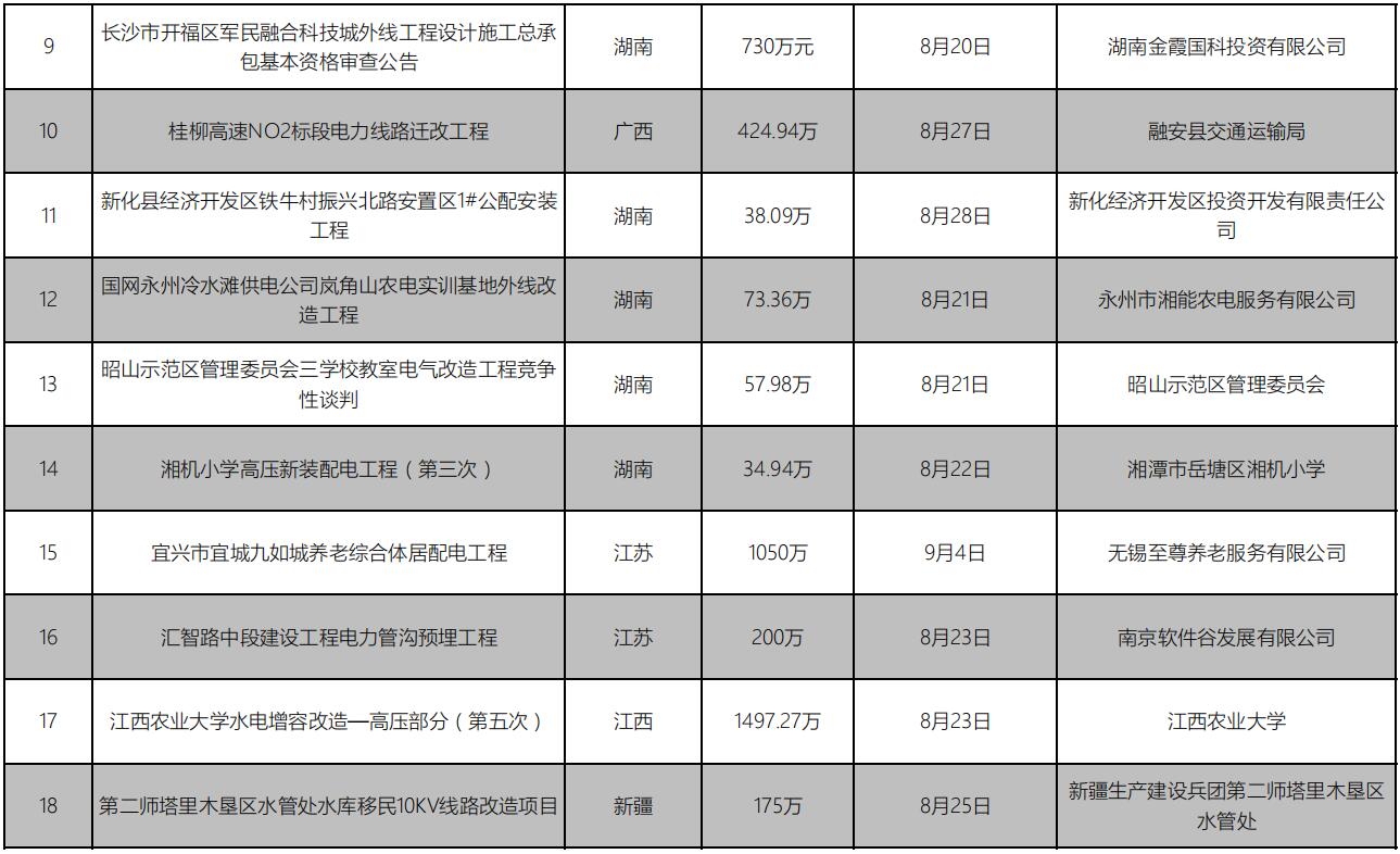 招标信息丨电力工程项目(8月第1期)